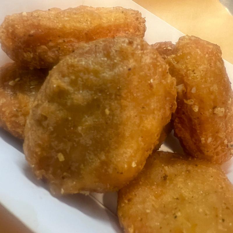 Crispy fried chicken nuggets served with tater tots, French fries or apple sauce.